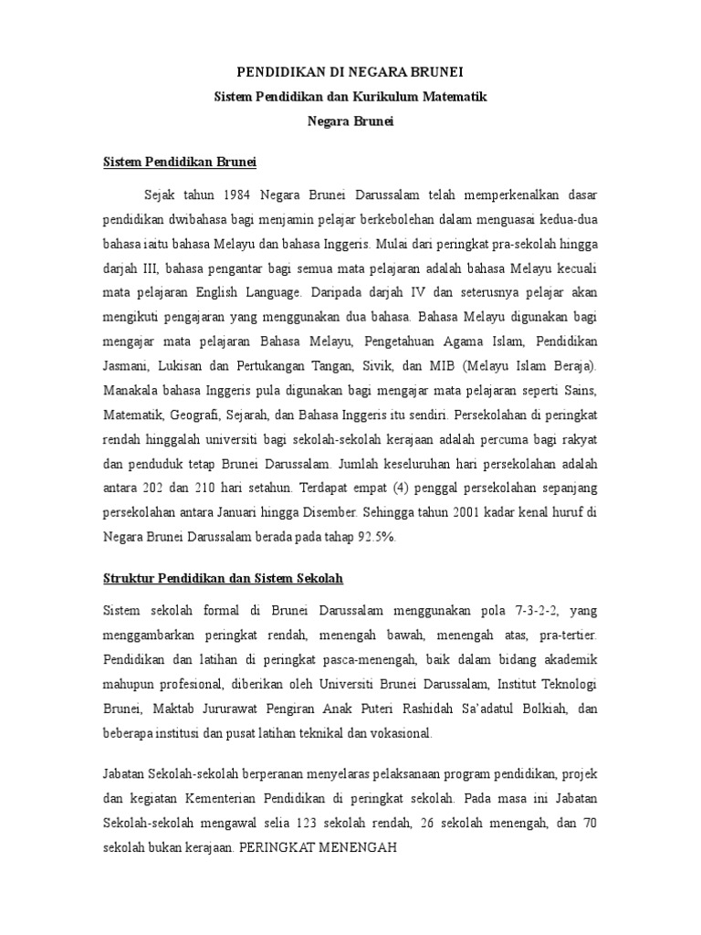 Kurikulum Di Brunei Darussalam : Kementerian Pendidikan Brunei / Brunei darussalam government scholarship is offered to citizens of negara brunei darussalam and to the international students to provide financial.. Brunei darusselam'a seyahat edecek türk vatandaşlarının dikkatine. Suasana pedesaan di brunei darussalam. Brunei darussalam government scholarship for foreign students tenable in brunei darussalam (ministry of foreign affairs, brunei darussalam). Struktur organisasi proses perkembangan kurikulum. This page provides access to reports on brunei darussalam that assess regulatory constraints on competition in the logistics sector to identify regulations that hinder the efficient functioning of markets and create an unlevel playing field for.